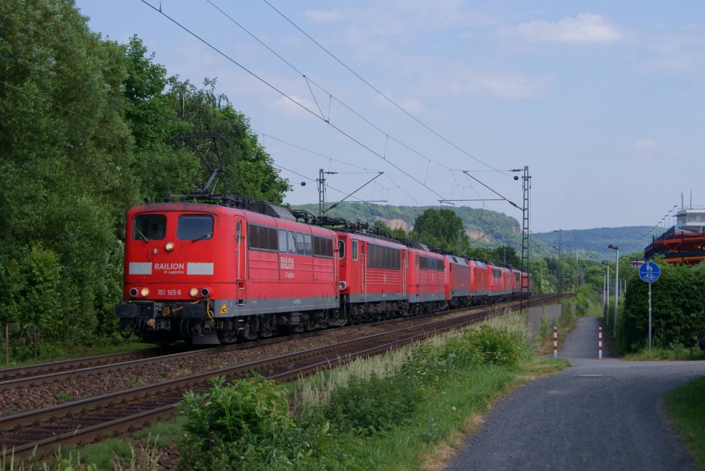 151 165-8 zog am 02.06.2012 einen Lokzug durch Bonn-Limperich