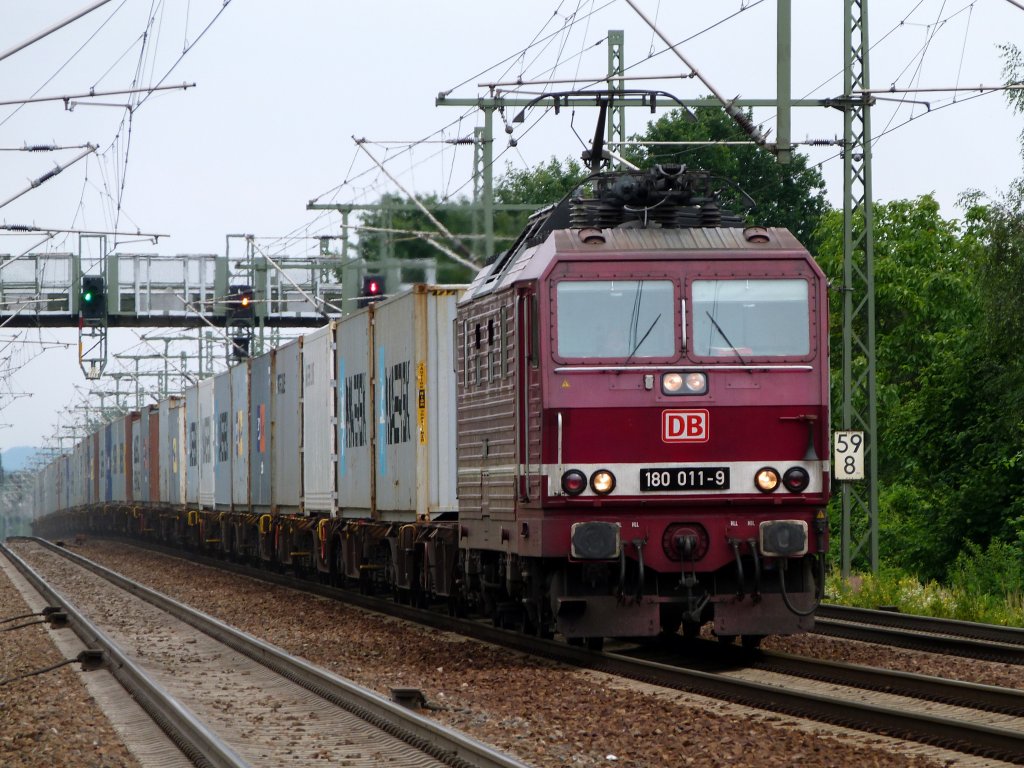 180 011 durchfuhr mit ihrem Containerzug DResden Strehlen am 24.6.12