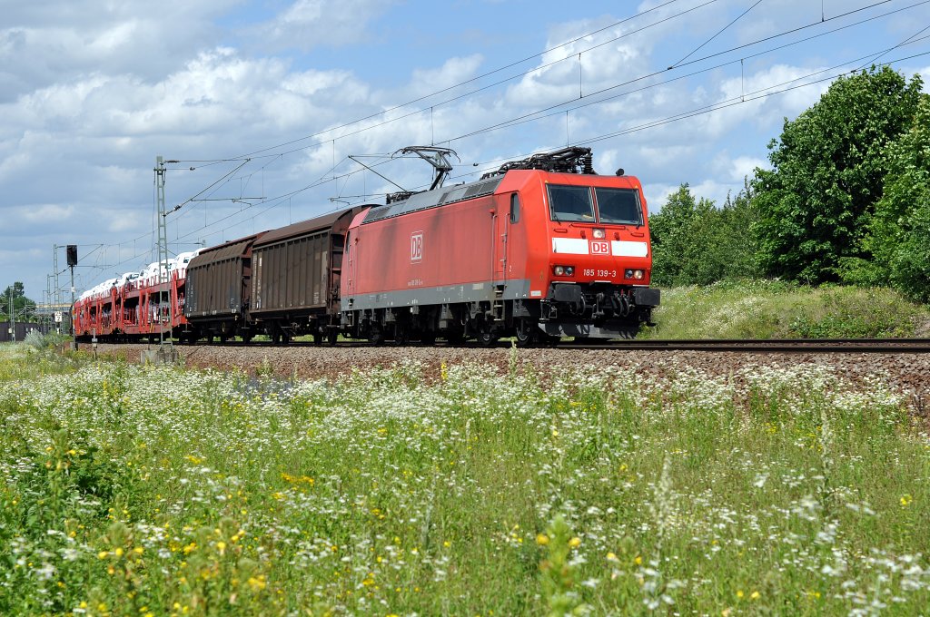Am 24.06.2012 kam 185 259 mit einem gemischten Güterzug durch Stendal