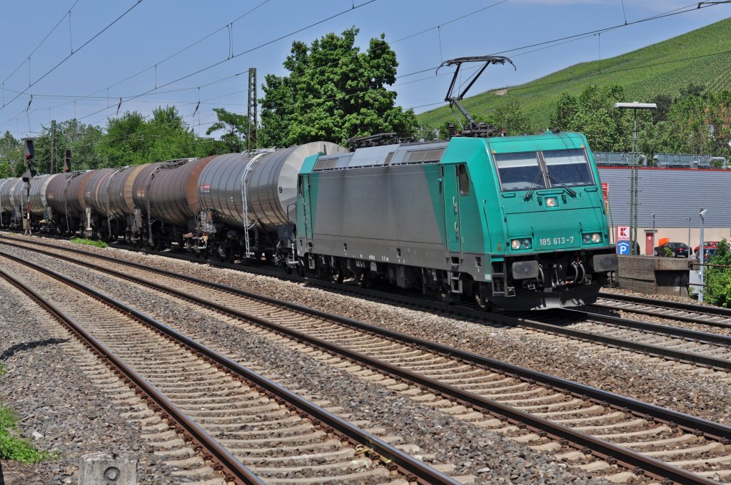 185 001 ist am 05.06.2012 mit gemischten Güterzug in Gundelsdorf auf der Frankenwaldbahn.