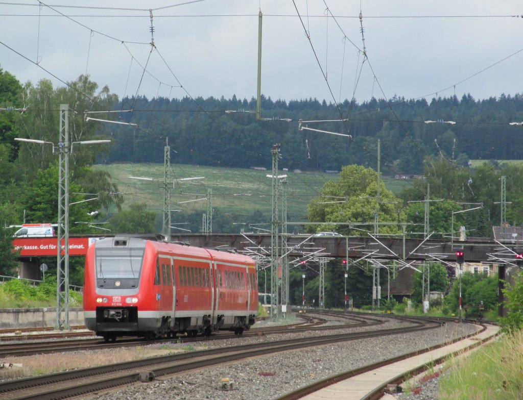 612 654 erreicht am 25. Juni 2012 als RB von Saalfeld nach Bamberg den Bahnhof Kronach.