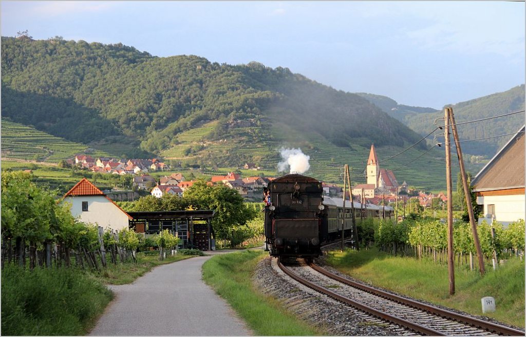 Mit dem Tender voraus fuhr die 33 132 von Brenner & Brenner von Wien/Heiligenstadt kommend durch die schöne Wachau zur Sonnwendfeier nach Spitz. Die Aufnahme entstand zwischen Dürnstein und Weißenkirchen, 13.6.12