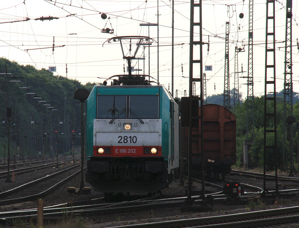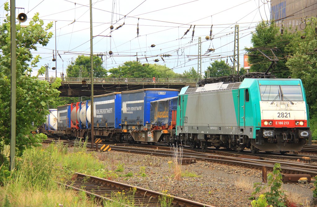 Die Cobra 2821 kommt mit einem Containerzug aus Belgien und fährt in Aachen-West ein bei Wolken am 25.6.2012.
