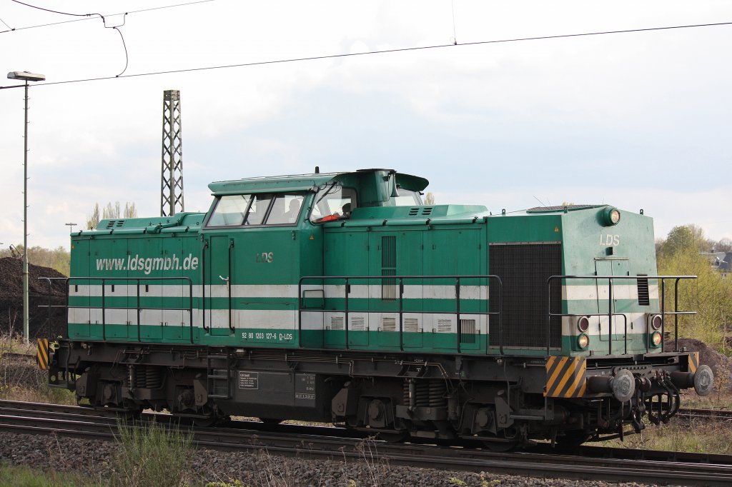 LDS 203 127 verlässt am 19.4.12 als Lz den Gbf Duisburg-Wedau.