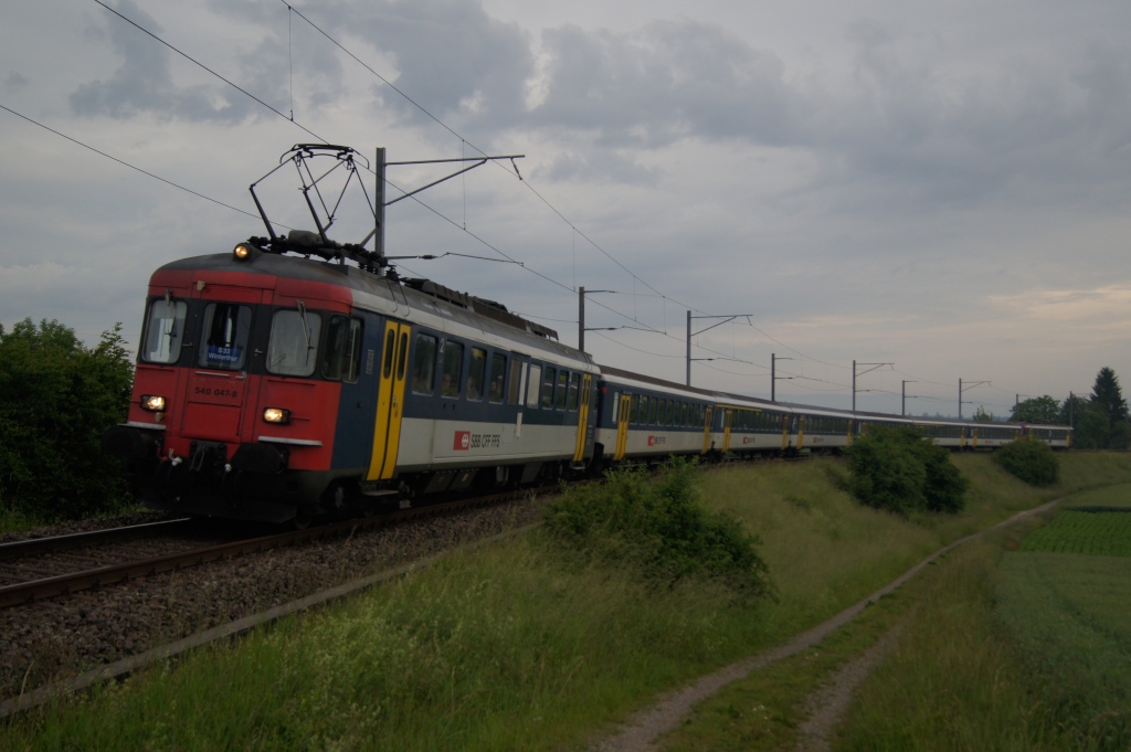 Noch immer wird in den Stosszeiten ein Umlauf der S 33 mit einem RBe 540-Doppelpendel gefahren. Hier befindet sich der Zug am 7.6.12 kurz nach Andelfingen.