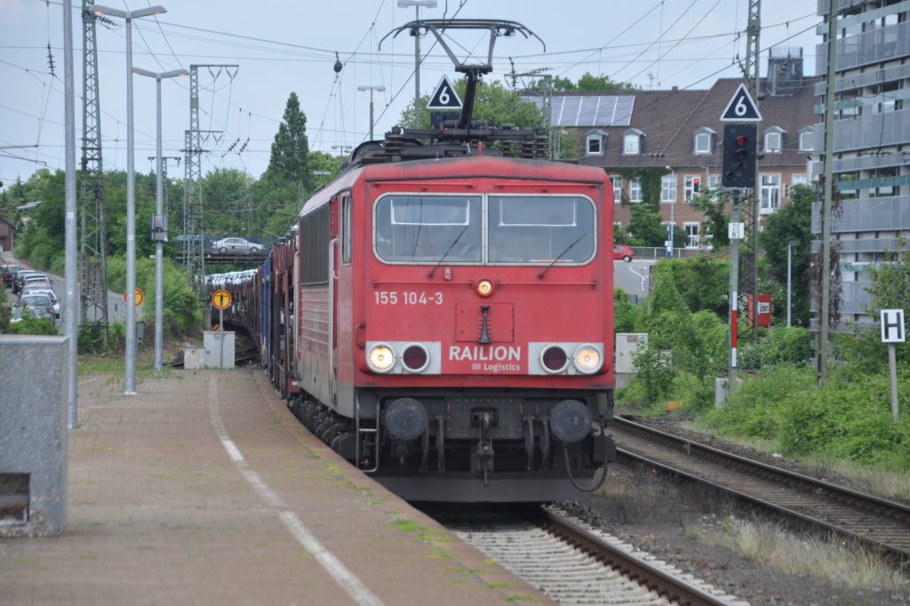 RHEINE (Kreis Steinfurt), 11.06.2012, 155 104-3 auf Durchfahrt durch den Bahnhof Rheine
