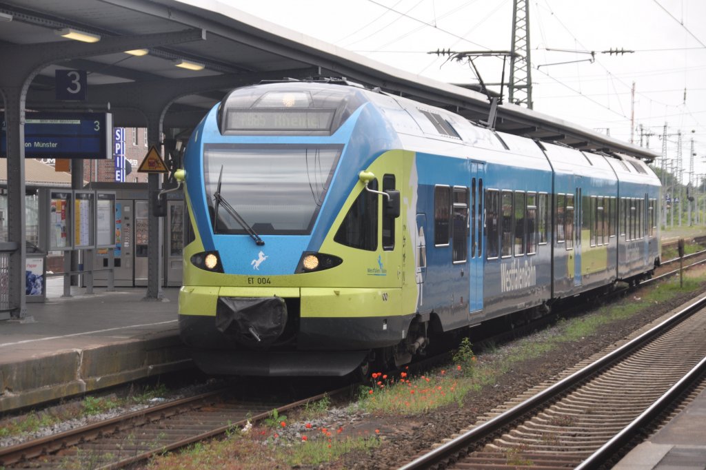 RHEINE (Kreis Steinfurt), 11.06.2012, ET 004 der Westfalenbahn als RB 65 von Münster Hbf im Zielbahnhof Rheine