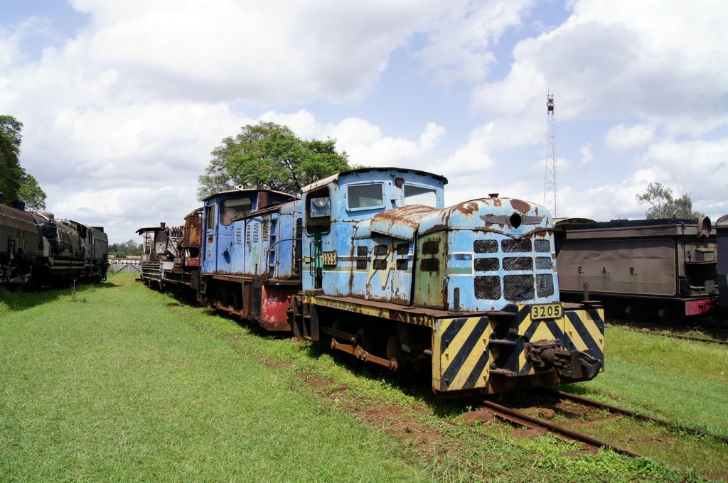 Die riesige Doppeltender Garratt 5930 (Mount Shengena) am 2.6.2012 im Eisenbahnmuseum Nairobi. Diese Baureihe ist die stärkste jemals gebaute Meterspur Dampflok und konnte aufgrund ihrer enormen Achslast nur auf der Hauptstrecke Nairobi-Mombasa eingesetzt werden. Eine weitere Class 59 ist betriebsfähig und wird vor Sonderzügen eingesetzt.