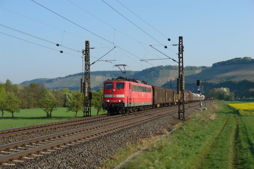 151 064 mit einem Güterzug am 19.04.2011 unterwegs bei Himmelstadt.