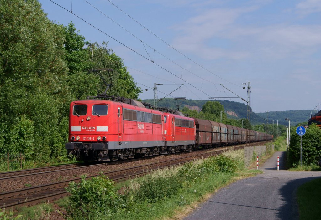 151 139-3 und eine weitere 151 fahren am 02.06.2012 mit dem Xpedys Zug in Richtung Aachen durch Bonn-Limperich