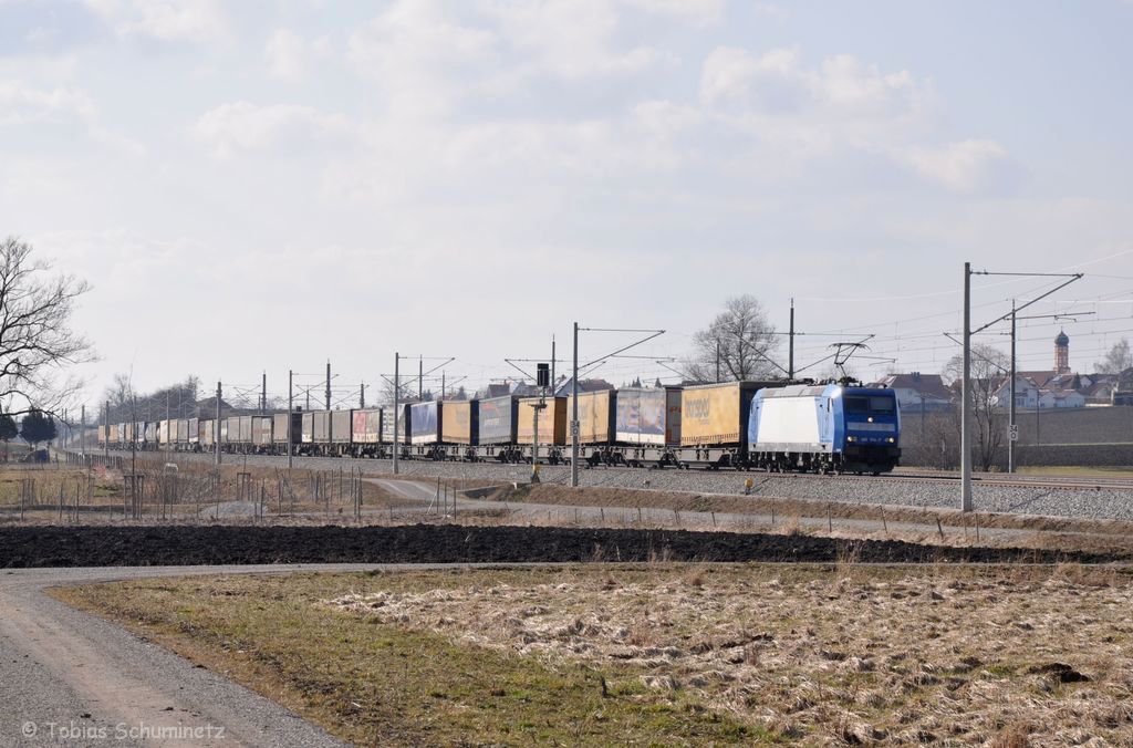 185 362-1 mit eingem gemischten Güterzug in Bonn-Limperich am 02.06.2012