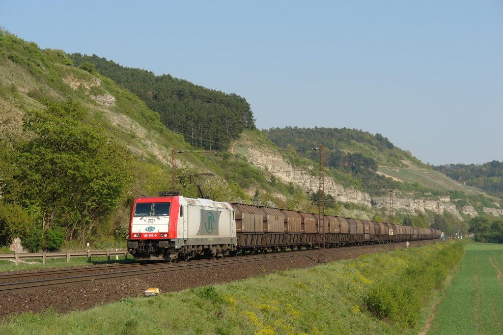 185 598 mit dem ITL-Kokszug nach Frankreich am 19.04.2011 unterwegs bei Karlstadt.