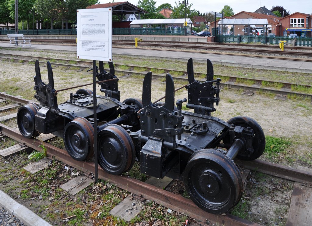 20.05.10 , Bruchhausen-Vilsen ; Rollböcke ; mit Hilfe der Spindeln werden die Gabeln so verengt, dass sie stramm an der Achse anliegen