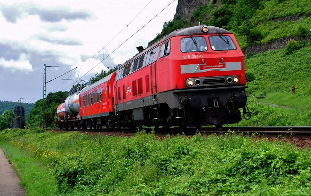 218 261 mit einem Ausbildungszug für Gefahrgut am 25.06.12 in Erpel!