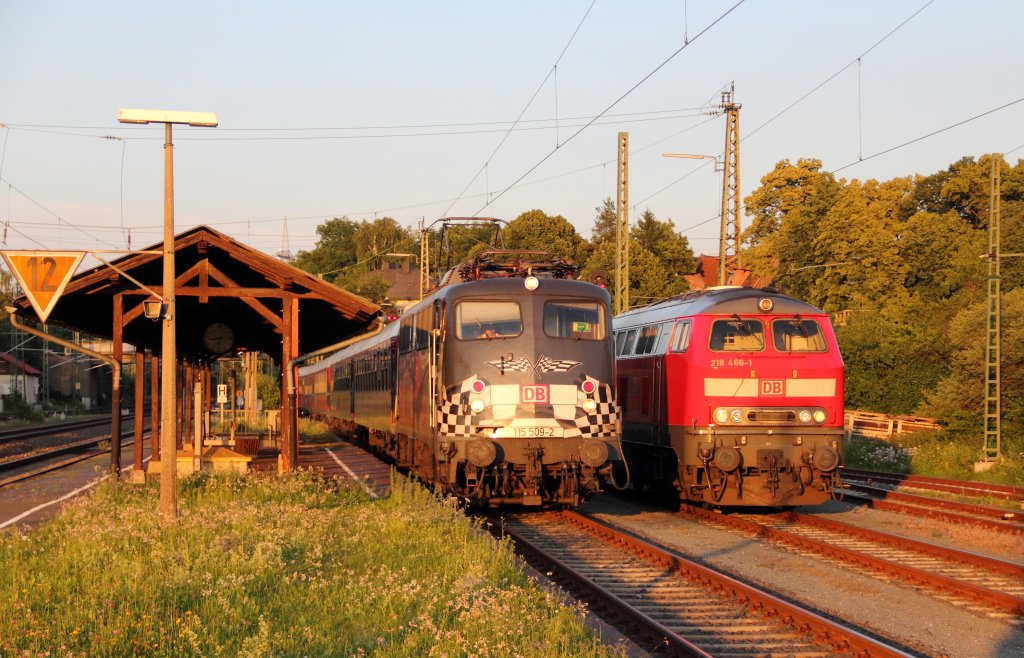 218 466-1 DB + 115 509-2 DB in Hochstadt/ Marktzeuln am 26.06.2012.