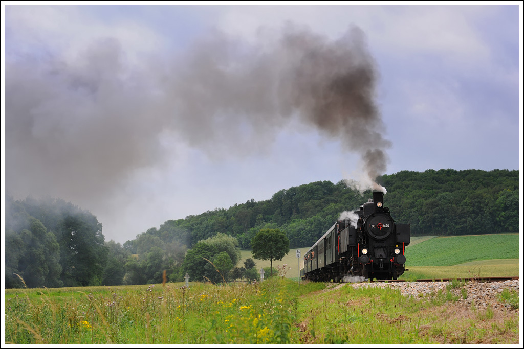 93.1420 am 23.6.2012 als NEX 7384 "Leiser Berge" von Korneuburg nach Ernstbrunn, aufgenommen kurz nach Wetzleinsdorf.