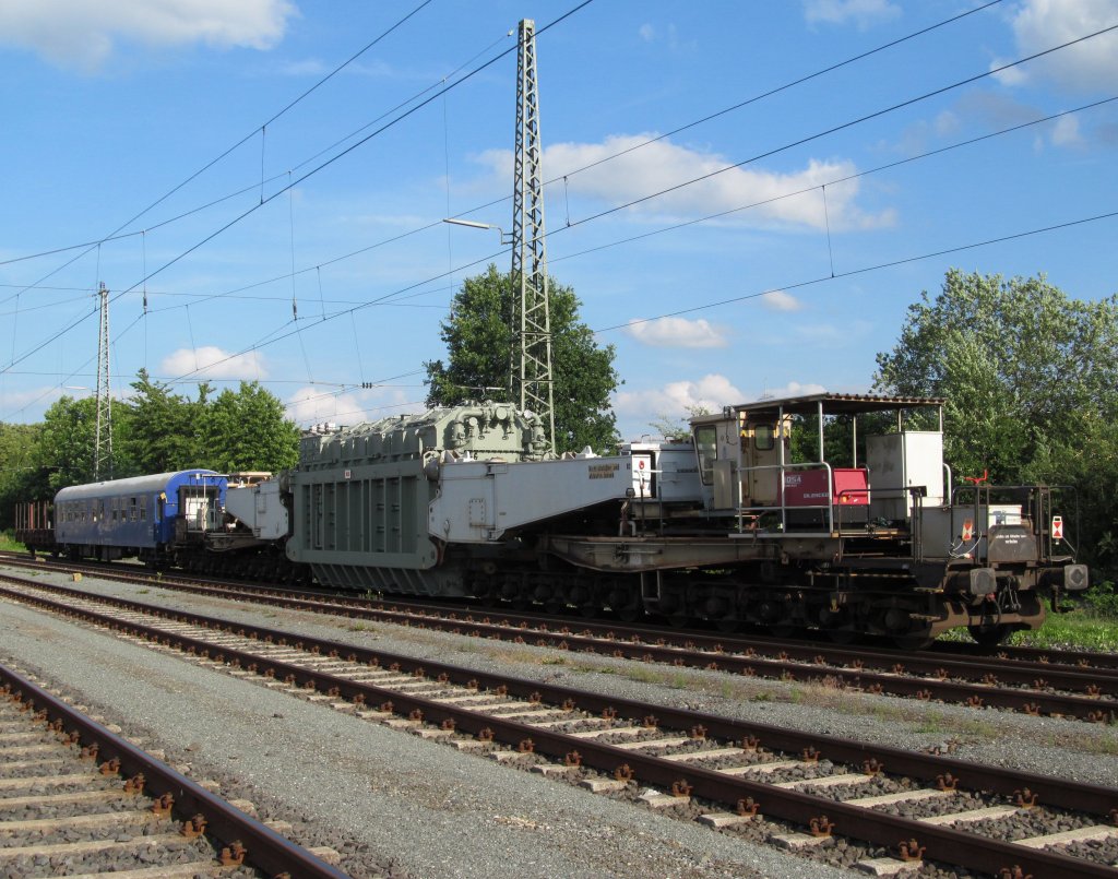 Abgestellter Trafotransport am 26. Juni 2012 im Bahnhof Hochstadt-Marktzeuln.