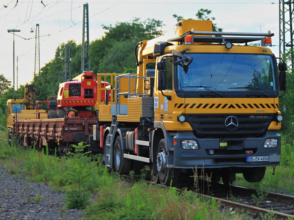 Actros 3346 Zweiwegefahrzeug der Firma Balfour Beatty Rail Gmbh mit Hubbühnenaufbau am 23.06.2012 in Aachen West.