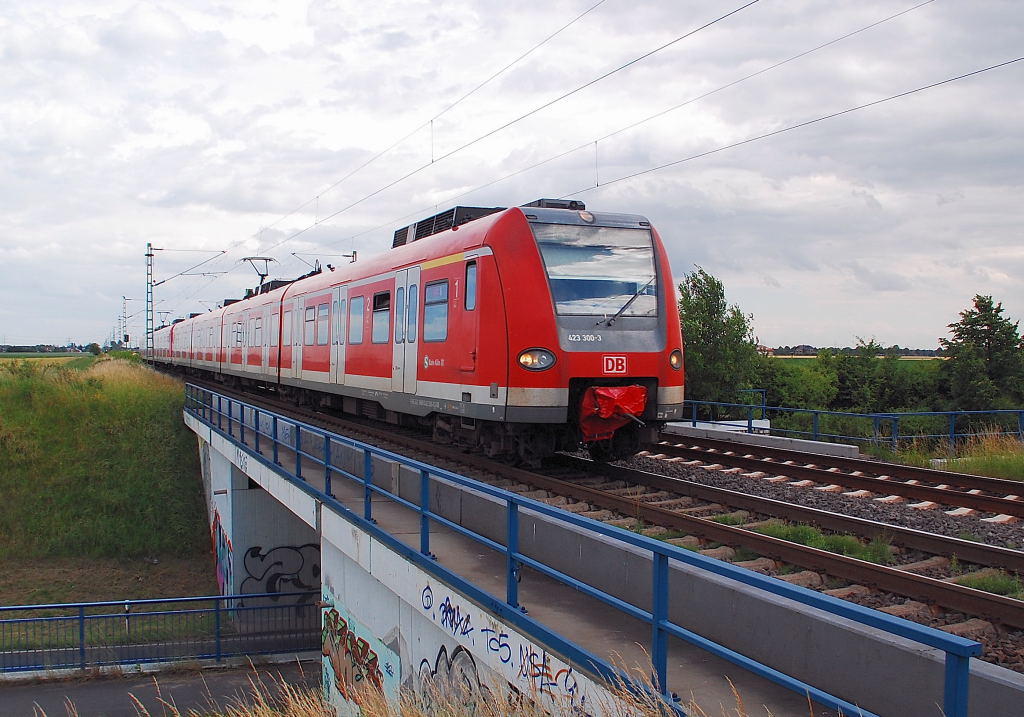 Am 22.6.2012 ist der 423 300-0 auf der K33 Brücke zu sehen. Der Zug ist als S11 nach Düsseldorf unterwegs bei Allerheiligen.
