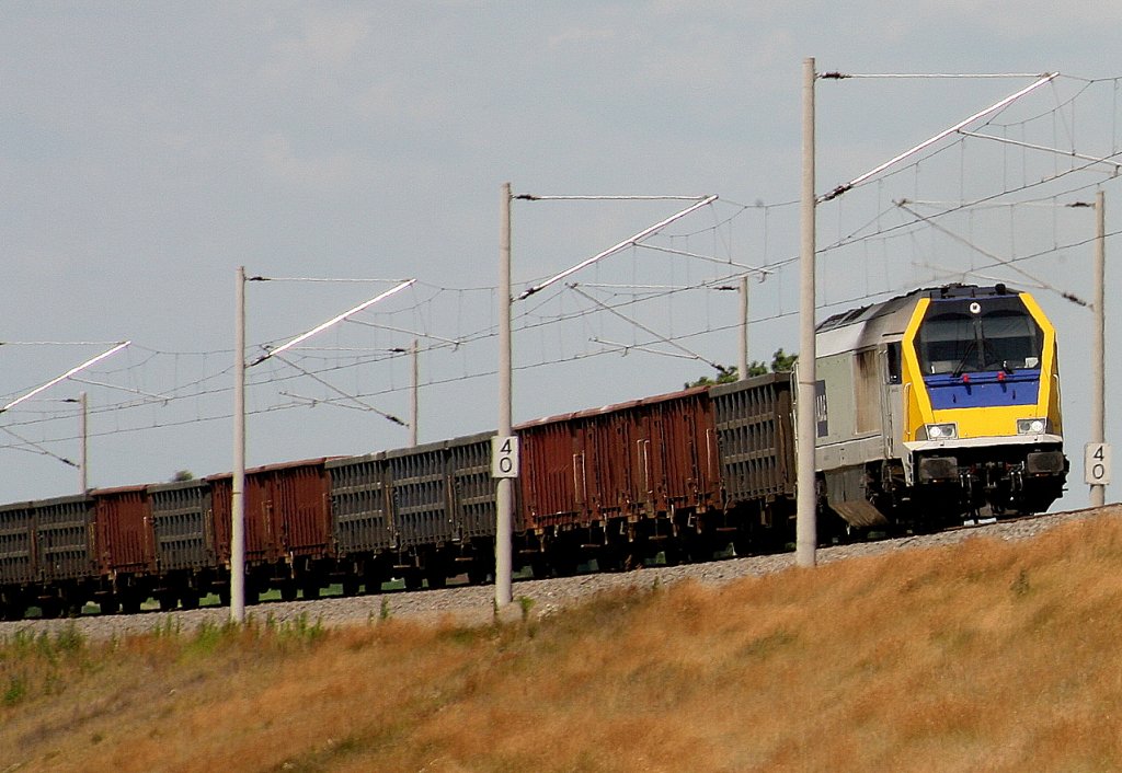 Am 23.06.2012 ein Nachschuß auf einen Ganzzug der gegen 12:35 Uhr über den Damm der Neubaustrecke Richtung Dresden eilt.