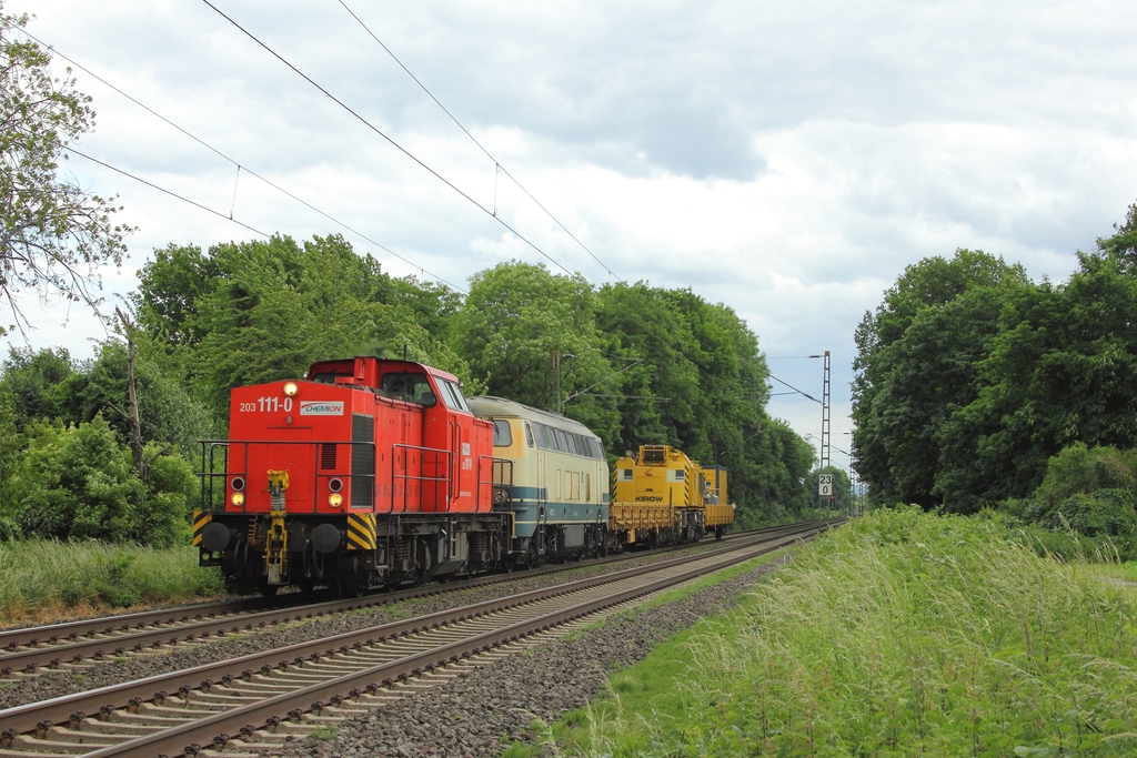 Chemion 203 111-0 mit EBM 216 224-6 in Bornheim am 9.6.2012
