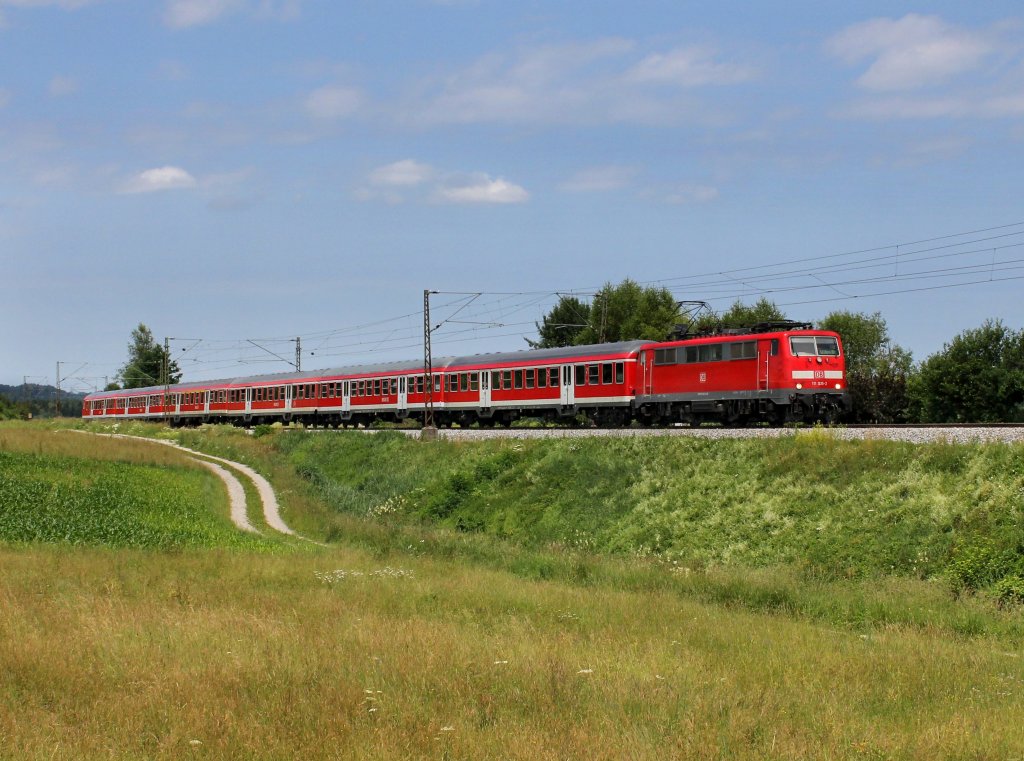 Die 111 035 mit einer RB nach Salzburg am 23.06.2012 unterwegs bei Ostermünchen.