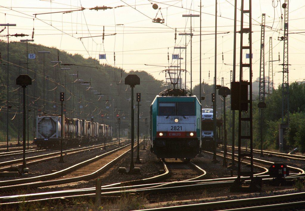 Die Cobra 2824 steht mit einem Kesselzug in Aachen-West in der Abendsonne am 26.6.2012.