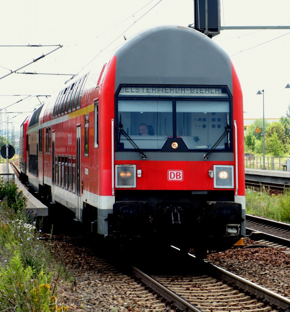 Geradewegs aus der Waschanlage, nein ausfahrend aus Priestewitz ist hier am 23.06.2012 um 11:59:57 Uhr die RB nach Elsterwerda Biehla , 143 585-8 schiebt.