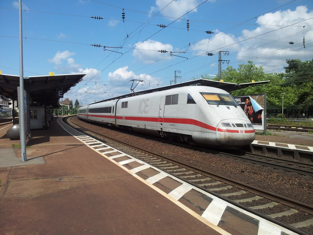 Zu meiner Überraschung stand am 27.06.2012 jener ICE (401 082-3) im Bahnhof Rastatt auf dem Hauptgleis in Richtung Karlsruhe. Da mein Handy eine sehr gute Kamera besitzt schoss ich gleich ein Bild. Der Grund für diesen ungewöhnlichen Halt ist mir nicht bekannt, soweit ich erkenne konnte waren aber auch keine Fahrgäste im Zug.