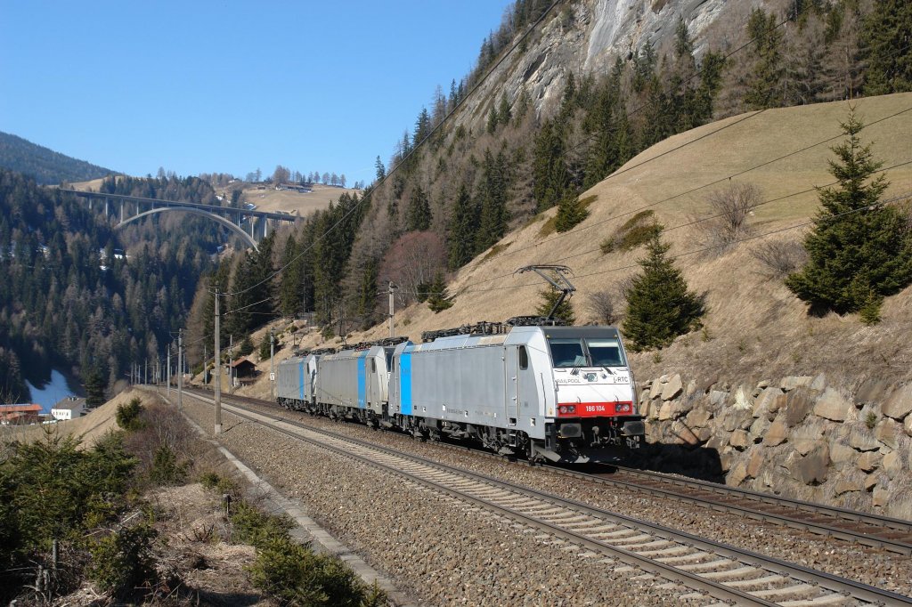 186 104 + 186 110 + 186 105 nach Kufstein am 08.03.2011 unterwegs bei St. Jodok am Brenner.