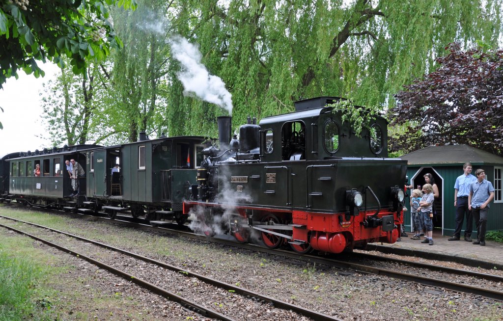 23.05.10 , Bruchhausen-Vilsen ; ein Zug nach Bhv, bespannt mit der "Spreewald", wartet in Heiligenberg auf den Gegennzug