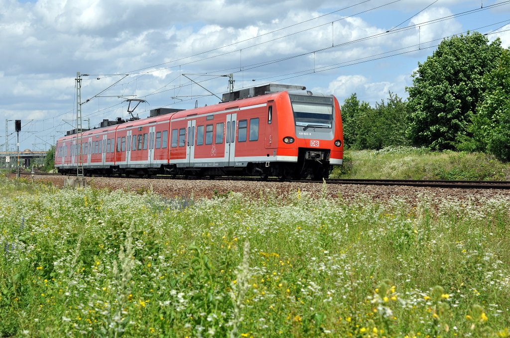 Durch die Müllkippe hindurch wird der TGV nach Queren des Stadtbahngleises gleich die Bahnstrecke Heidelberg - Karlsruhe erreichen um dann in Karlsruhe seinen ersten Halt einzulegen.
