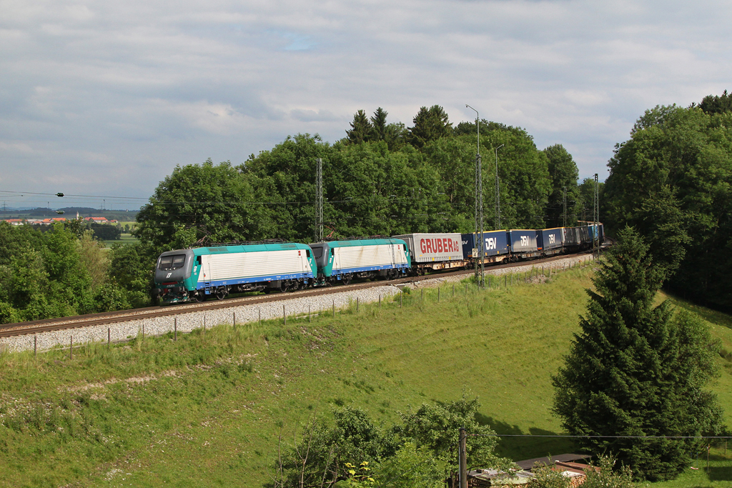 E412 014 + 016 mit einem KLV Zug am 23.06.2012 in Aßling.