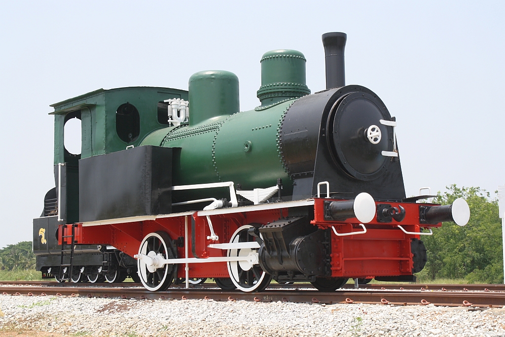 In der Aussenstelle des Jesada Technik Museum bei Nakhon Chaisi steht mit einer Hanomag-Lok (Bt-2n, Bauj. 1912, Fabr.Nr. 6039) die einzige Lok Thailands mit einer Spurweite von 1435mm. Die Lok wurde 1912 an Kali Chemie AG geliefert und war zuletzt im Süddeutschen Eisenbahnmuseum Heilbronn. Bild vom 17.März 2012.