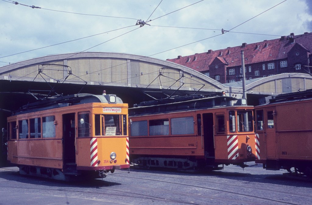 Kiel KVAG Arbeitstriebwagen 354 im Straßenbahnbetriebsbahnhof am 9. Juni 1968. - Scan eines Diapositivs.