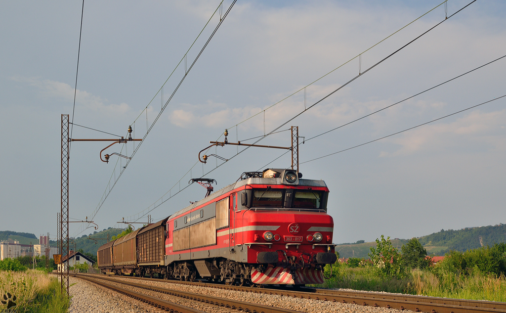 S´ 363-017 zieht Güterzug durch Maribor-Tabor Richtung Verschiebebahnhof Tezno. /21.6.2012