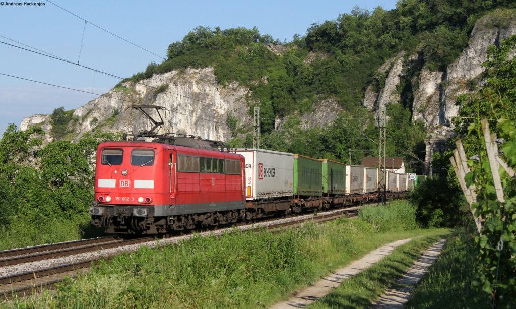 Unterwegs im Wurmtal bei Herzogenrath(Kr.Aachen) ist die 151 029-6 am Abend des 27.Juni 2012.Am Haken ein Kesselwagenzug.
