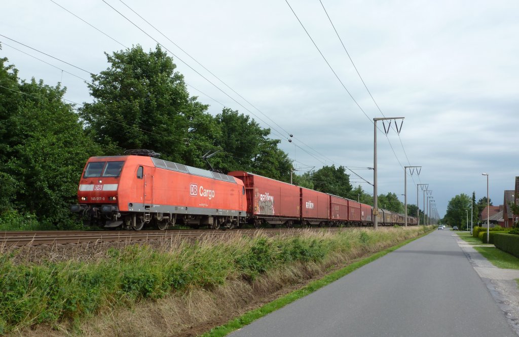 145 023-6 PRESS (145 083-2)  125 Jahre Fleischmann  mit der Wagenlok 253 015-8 und einem ERR GmbH Eanos Ganzzug bei Nennhausen und fuhr in Richtung Rathenow weiter. In Rathenow wurde die 145 023-6 abgekoppelt und die 253 015-8 fuhr dann mit dem Zug weiter nach Brandenburg Altstadt und die 145 023 fuhr Lz nach Stendal. 29.06.2012