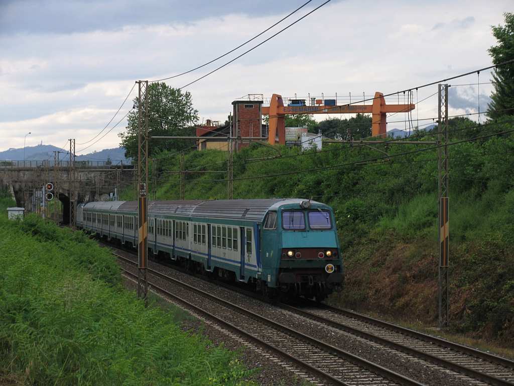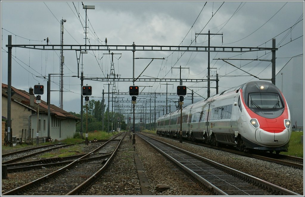 Ein  Pinocchio  (ETR 610) auf seiner schnellen (Durch)-Fahrt in Allaman Richtung Milano.