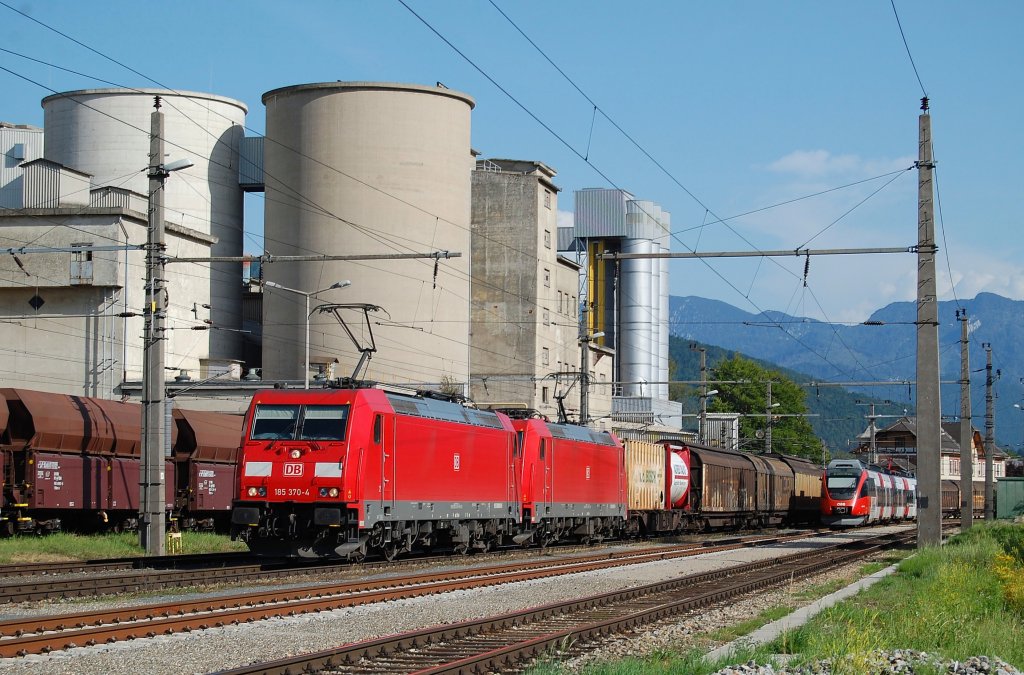 Mit dem Papierzug 48930 sind 185 370 + 185 348 am 29.06.2012 in
