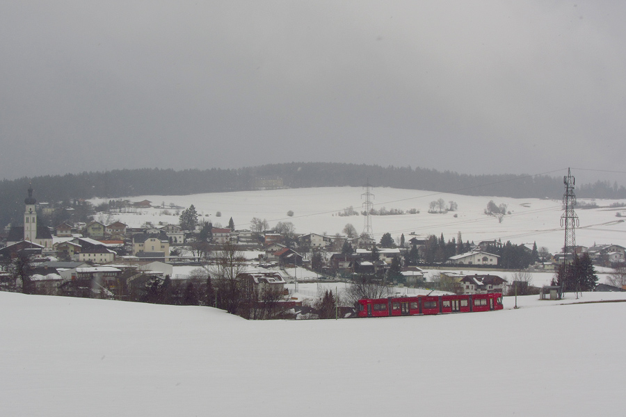 Ein Regionalzug von Buchs in der Schweiz kommend, verläßt die Haltestelle Gisingen Richtung Feldkirch, Mai 2012