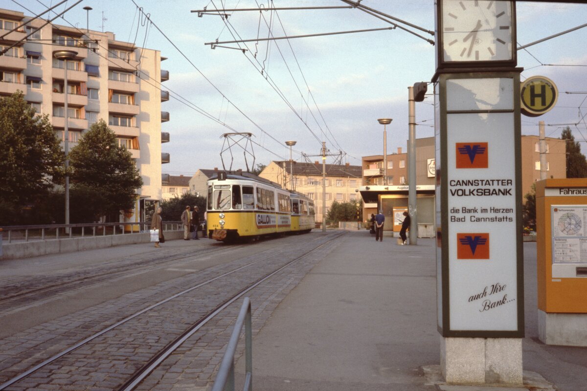 Stuttgart SSB SL 1 (Maschinenfabrik Esslingen-GT4 454) Bad Cannstatt, Augsburger Platz im Juli 1979. - Scan eines Diapositivs. Kamera: Leica CL.