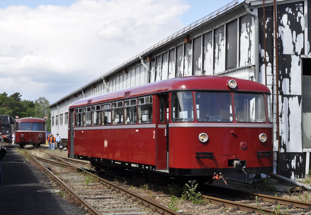 Der neue Regioshuttle von Stadler aus Pankow für die Vogtlandbahn bei der Präsentation zum Tag der offenen Tür in den Regentalwerken in Neumark(Sachs). Hier zu sehen der VT 52, im Hintergrund VT 53 der einen Shuttleservice vom Bahnof Neumark(Sachs) zum Betriebsgelände gefahren ist. Die Regioshuttle haben auch eine Zulassung um bis ins Zentrum von Zwickau zu fahren.02.06.2012