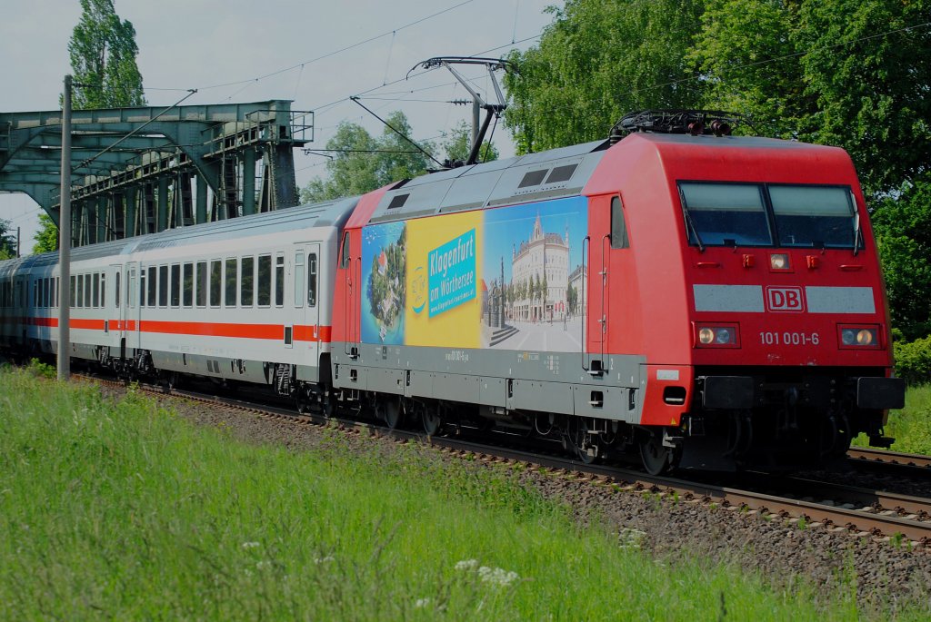 BERLIN, 26.05.2012, 101 001-6 mit IC-Waggons auf Vorbeifahrt am S-Bahnhof Warschauer Straße