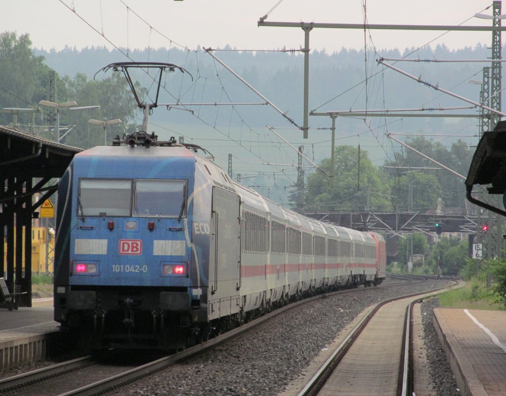 101 042-0  Ecophant  schiebt am 2. Juni 2012 den IC 2304 nach Warnemünde durch Kronach.