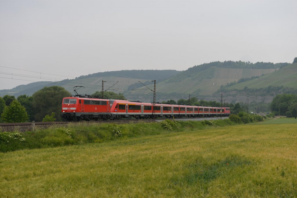 111 177 mit einem RE nach Würzburg am 02.06.2012 unterwegs bei Himmelstadt.