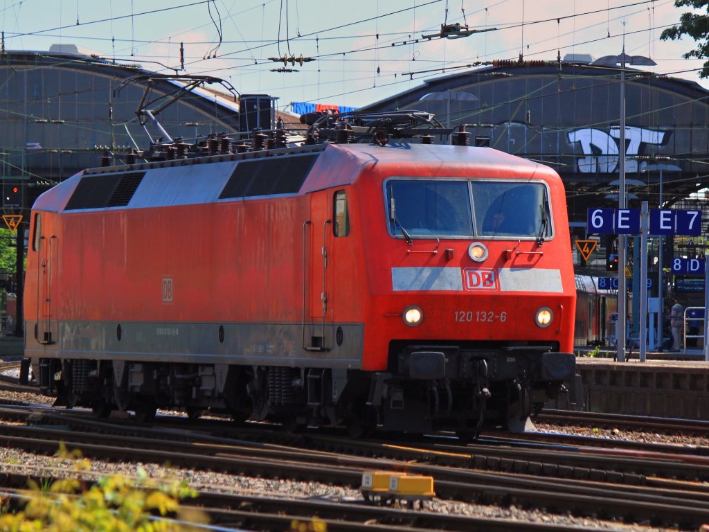 120 132-6 fährt am 02.06.2012 als Lz durch den Aachener Hbf.