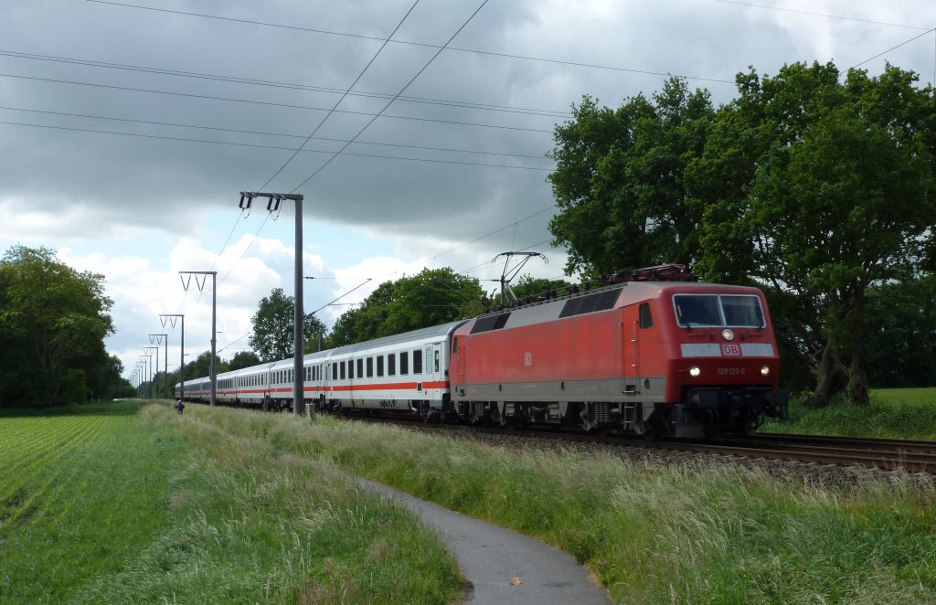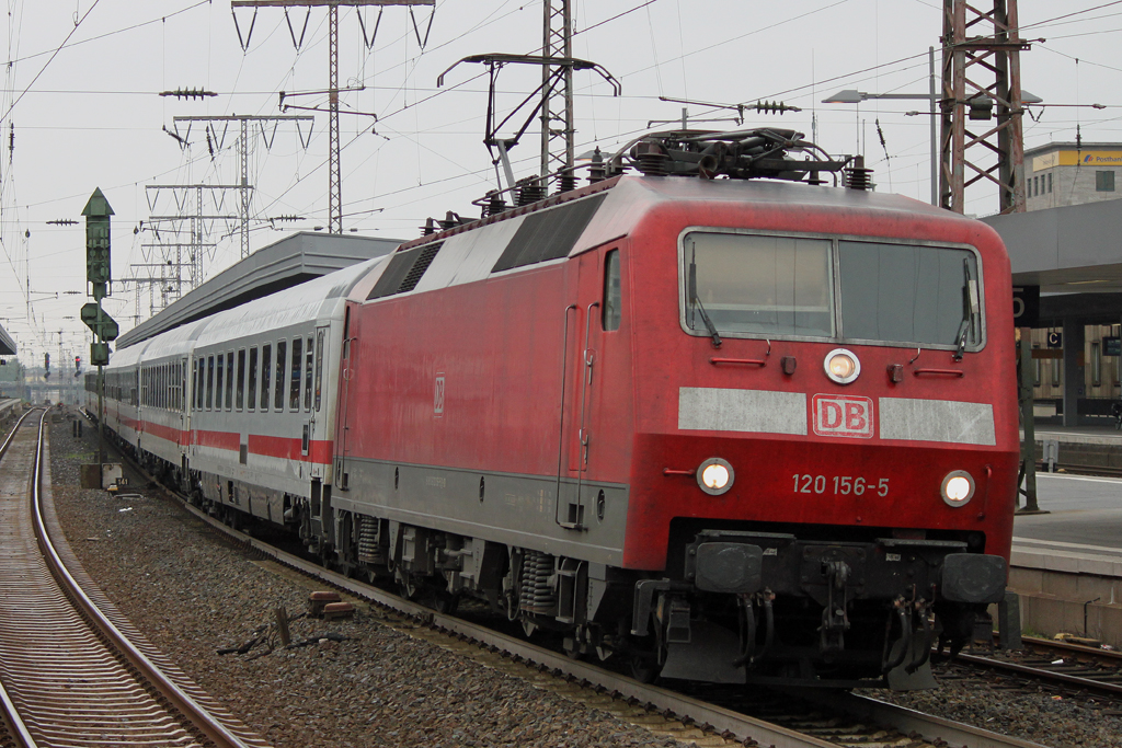 120 156 zieht am 6.5.12 den IC 2010 aus Essen Hbf heraus.