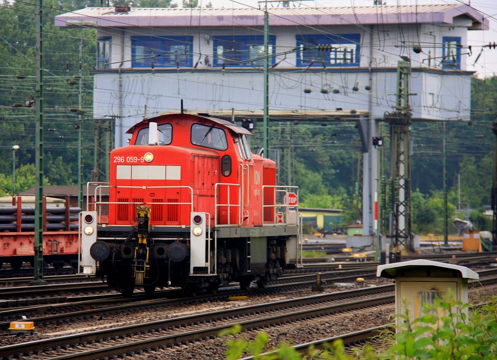 296 059-9 von Railion rangiert in Köln-Gremberg bei Regenwetter am 3.6.2012.