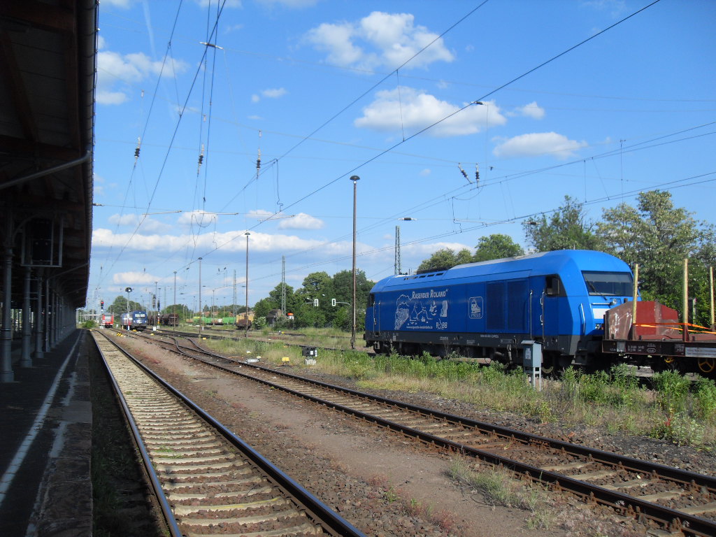 145 023-6 PRESS  125 Jahre Fleischmann  (145 083-2) mit der Wagenlok Lok 4 (202 787-8) KCL - KUBE CON logistics GmbH für SETG - Salzburger EisenbahnTransportLogistik GmbH und einem Holzzug in Rathenow, in Richtung Stendal unterwegs. 02.06.2012